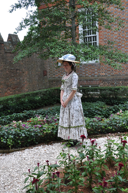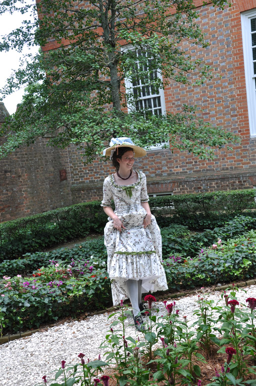 In my original wardrobe plans for Williamsburg I had intended to make several new day outfits, but time got away from me and ended up pulling out my wavy print jacket and petticoat to wear instead. I have to say I’m really glad I did! When prepping for an event, it’s easy for me to get into the mindset that everything I wear needs to be new, so I often forget how much I enjoy rewearing favorite costumes. My events are so few and so spread out that it feels almost obligatory to make something new every time, but I’m resolving this year to focus on quality over quantity and make things I truly love and am proud of the construction.