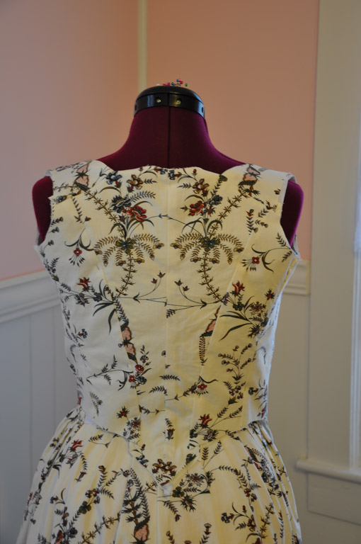 A 1780s jacket and petticoat made from a Williamsburg reproduction cotton print.