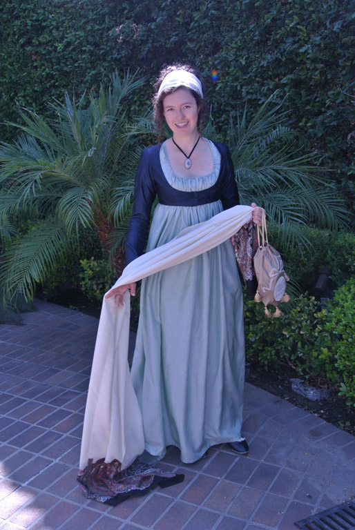One of the things I love, and admittedly hate too, about costuming is the fact that every project is different. I may have made things from the era before, but each project presents its own unique challenges, frustrations, and opportunities to learn. One of my current project is the perfect example. I’m working on a mid-1790s evening gown with a gathered front and high, narrow back. My love for 1780s and 1790s gathered front transitional gowns is pretty obvious when you look at my project history, but despite the fact that I’ve made five similar gowns, this project has been an interesting experiment.