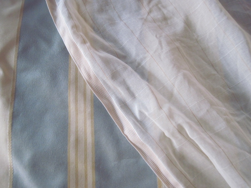 The jacket is made from a cream cotton voile with a thin brown stripe and white stripe plaid. It is flatlined in white cotton lawn. Originally, I was going to go for a pure white sheer like the fashion plate, but the taffeta is more dusty with gold and cream stripes and the contrast was too stark. Also, the fashion plate shows lace for the ruffles on the sleeves, but I couldn't find any lace that a) was wide enough, b) I liked, and c) that I could afford. That was a hard combination to come by. So instead I used self fabric ruffles with the selvege (luckily it was a pretty one) for the hem to save me some time.