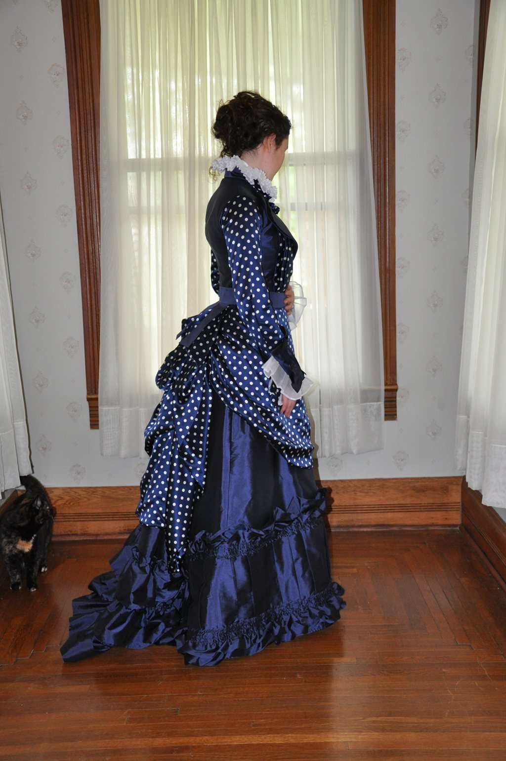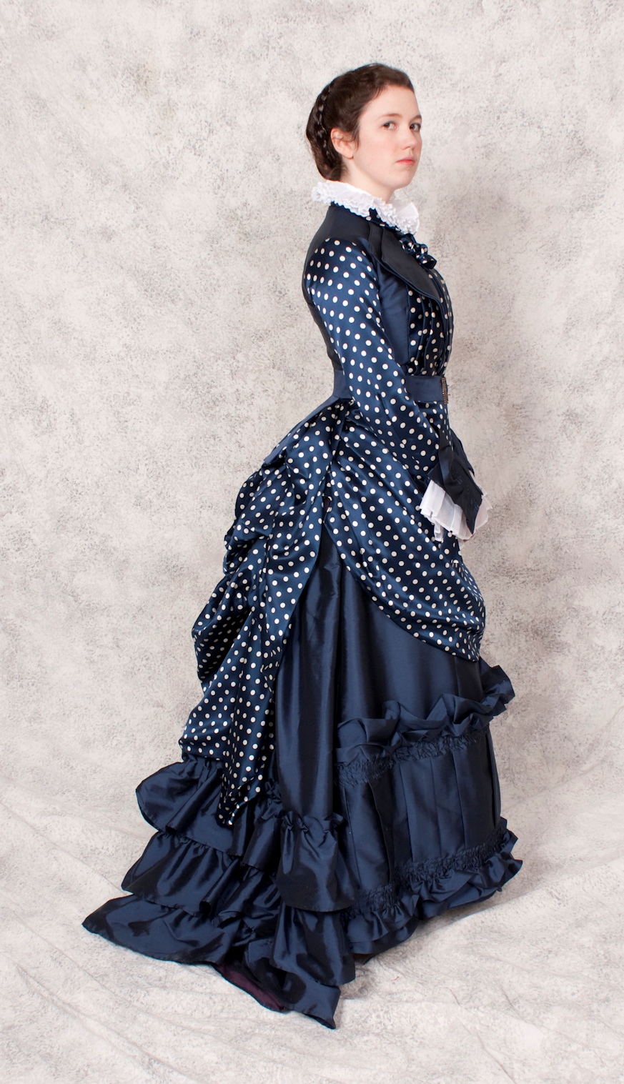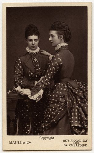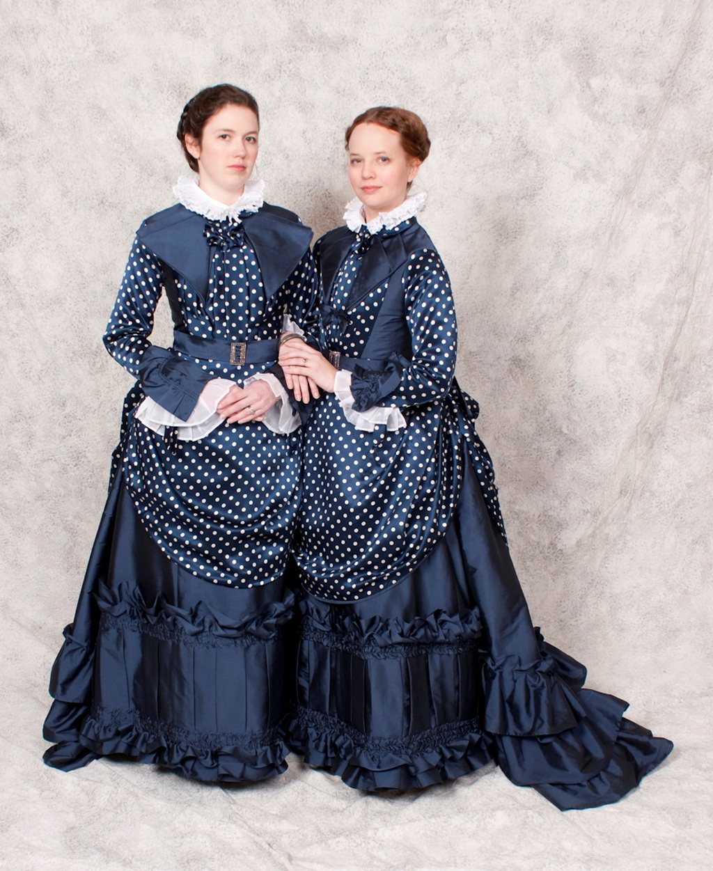 For Costume Con 29, my friend Katherine and I recreated a pair of dresses worn by Alexandria, Princess of Wales and her sister, Maria Feodorovna, Grand Duchess of Russia. In 1873 Maria visited Alexandria in London, and in what I like to think of as a sort of publicity stunt, the two dressed alike the entire time. Because of this, we were lucky enough to have several studio photographs of the sisters from different angles to use as reference when making our dresses. Another interesting aspect of this project was the fact that the original dresses were made thousands of miles apart and Katherine and I also live on opposite ends of the country. Fortunately, we had the help of email and digital cameras when recreating the dresses and didn’t have to rely solely on letters or my poor sketching abilities.