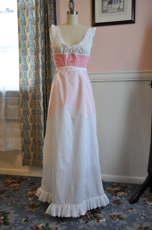 th century shift as a guide, I drafted a simple sleeveless chemise with a drawstring at the neckline. Since I wanted something versatile that I could use for multiple eras, I made the neckline rather low and wide so it can be adjusted easily under different styles.