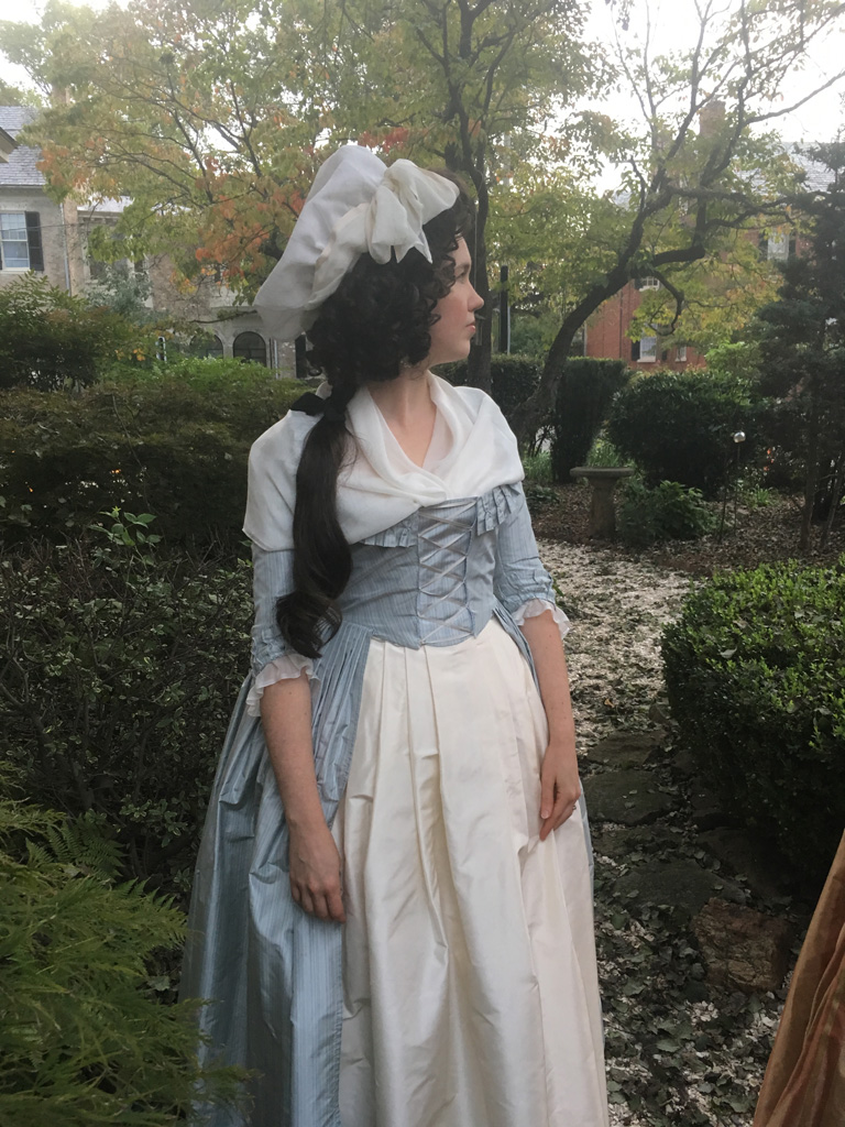 th century gown to reflect the new fashionable 1790s silhouette, copying specific alterations I’ve seen on extant gowns. In this case, I took