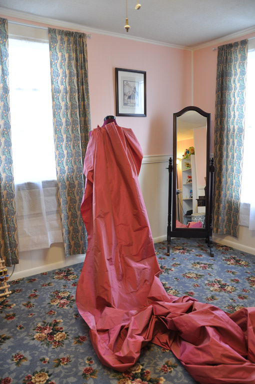 Since I only had a month to complete the dress, it is sewn with a combination of machine and hand work. The nature of the dress requires that much of it has to be sewn by hand but I’m using the machine for things like linings, long skirt seams, and petticoat side seams – basically anything that won’t show.