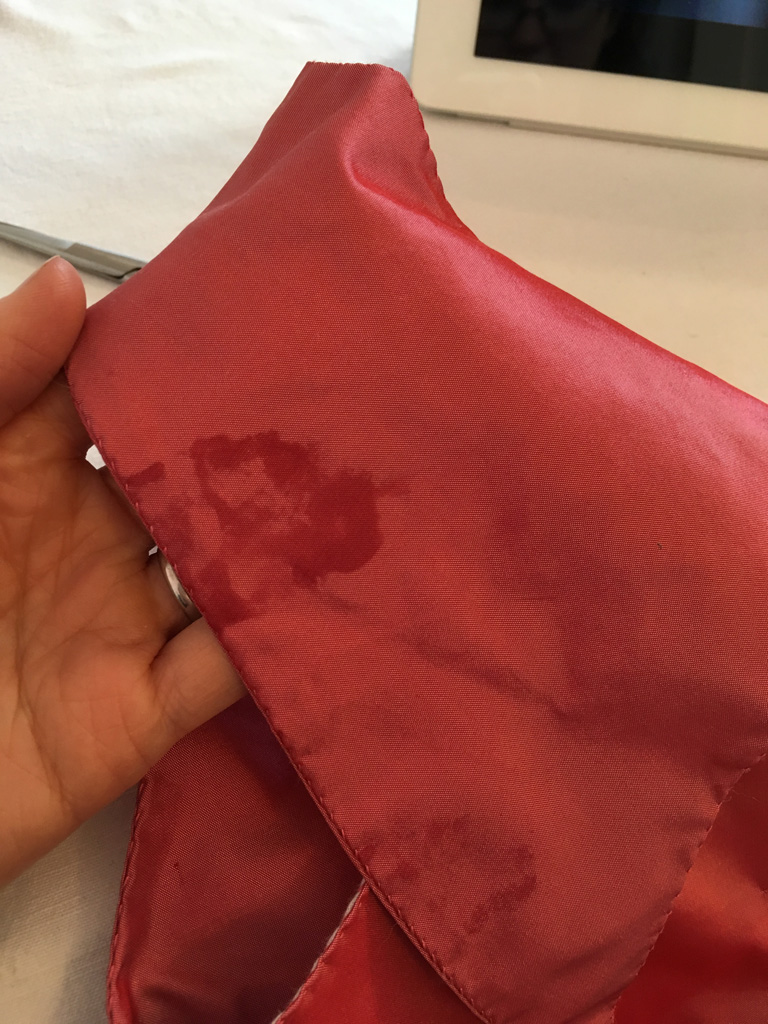 The spencer is made from a white and red crossed changeable silk taffeta, and the back and side back pieces are lined in a light weight linen, while the front is self-lined. It is hand sewn using my favorite late 18