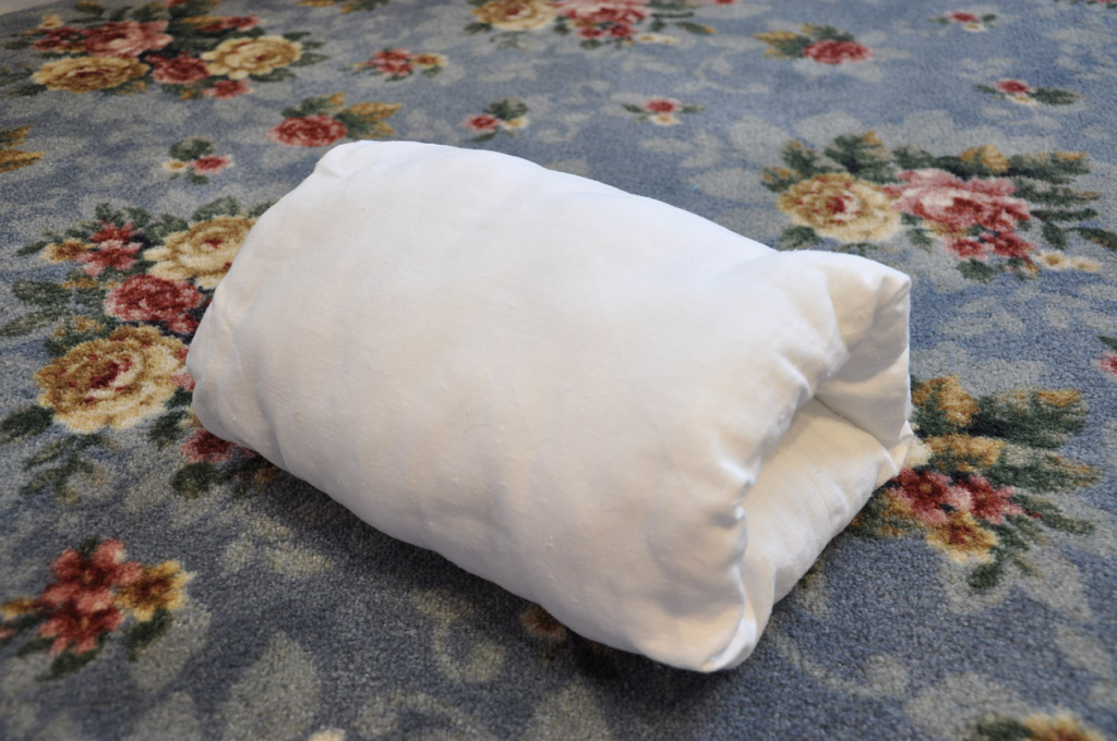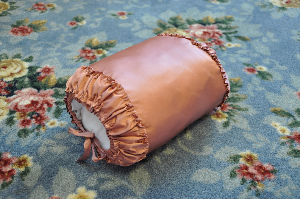 I also made a new muff base with the first of many removable muff covers. The muff itself is simple linen tube stuffed with fiber-fill and the first cover is dusty pink silk satin with ruched bands on each end. The cover is a rectangle of fabric with a channel sewn on each side. The decoration is sewn on and then the two ends are joined to form a tube. I ran a silk ribbon through the channels and once the cover its sliped on the muff, the sides are gathered to make a smooth fit. I was inspired by several costumer's muffs I've seen around the internet and in person, and I used the description from