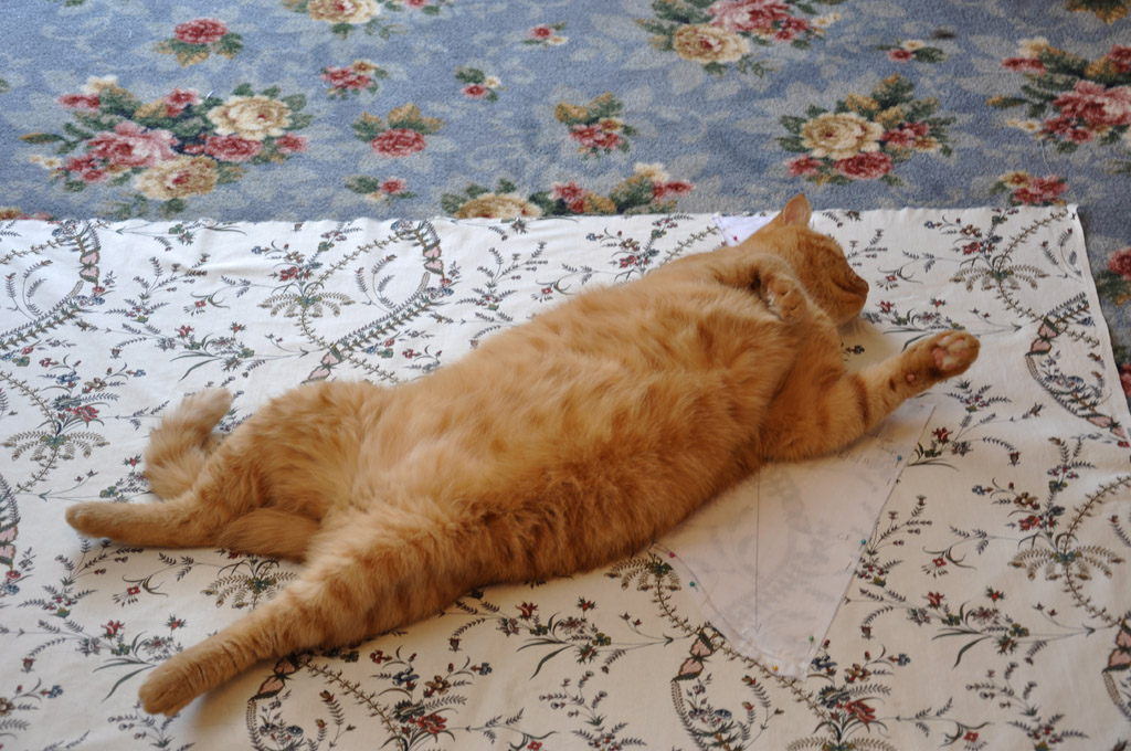 For the jacket I used the scaled polonaise pattern from Janet Arnold (pg 36) and fit it over my lightweight linen stays. I've used this pattern for all the my previous 18th century bodices and find it makes a nice base. The jacket is one layer of cotton print, lined with a lightweight linen. The seams are sewn using my cheater 18th century seam finishes: the two pieces of fashion fabric, and one lining piece together by machine and then cover the seam allowance by whipstitching the other lining piece over it. It looks period, gives some stability to the seam and is easy.