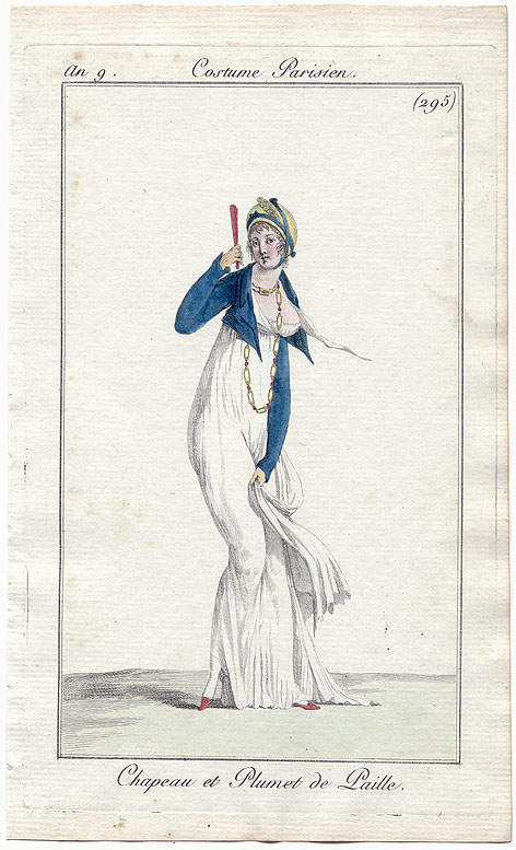A late 1790s open front spencer, made from teal pinstriped wool.