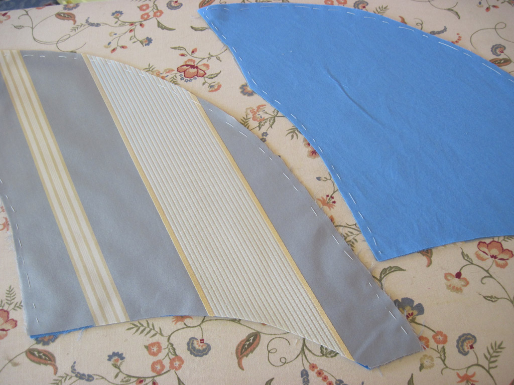I decided to make the skirt and bodice separate so I could easily refit it later or make a day version with the left over silk. The front 2/3s of the skirt is pleated with knife pleats and the very back is cartridge pleated. The skirt was then stitched to a waistband and basted to the bodice.