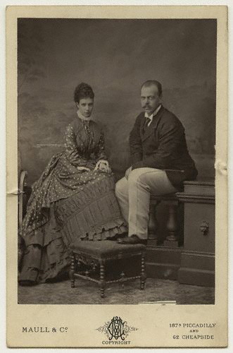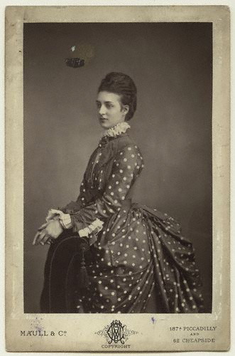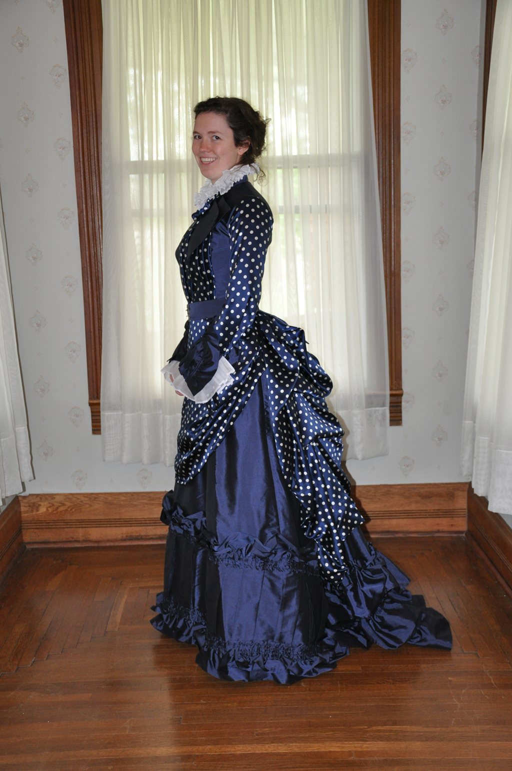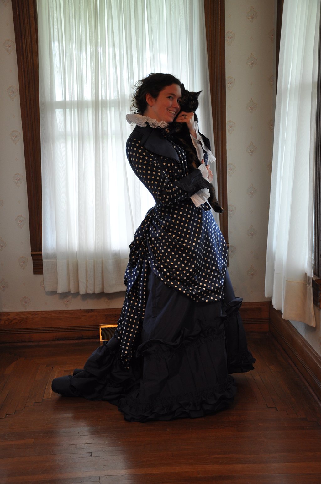 For Costume Con 29, my friend Katherine and I recreated a pair of dresses worn by Alexandria, Princess of Wales and her sister, Maria Feodorovna, Grand Duchess of Russia. In 1873 Maria visited Alexandria in London, and in what I like to think of as a sort of publicity stunt, the two dressed alike the entire time. Because of this, we were lucky enough to have several studio photographs of the sisters from different angles to use as reference when making our dresses. Another interesting aspect of this project was the fact that the original dresses were made thousands of miles apart and Katherine and I also live on opposite ends of the country. Fortunately, we had the help of email and digital cameras when recreating the dresses and didn’t have to rely solely on letters or my poor sketching abilities.