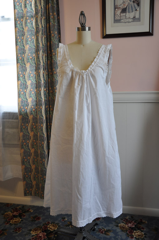 th century shift as a guide, I drafted a simple sleeveless chemise with a drawstring at the neckline. Since I wanted something versatile that I could use for multiple eras, I made the neckline rather low and wide so it can be adjusted easily under different styles.