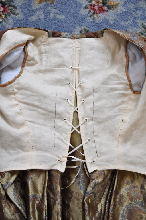 Before I move on to my next sewing project, I wanted to share a few detail shots and construction notes from my new brocade francaise. As I mentioned earlier, the construction follows the same method I outlined in my