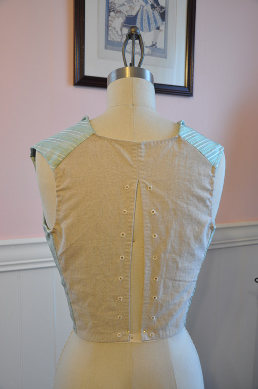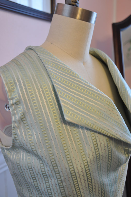 While waiting for the regency stays and card party dress fabric to arrive, I’ve been plugging away on my riding habit; this time tackling the waistcoat.