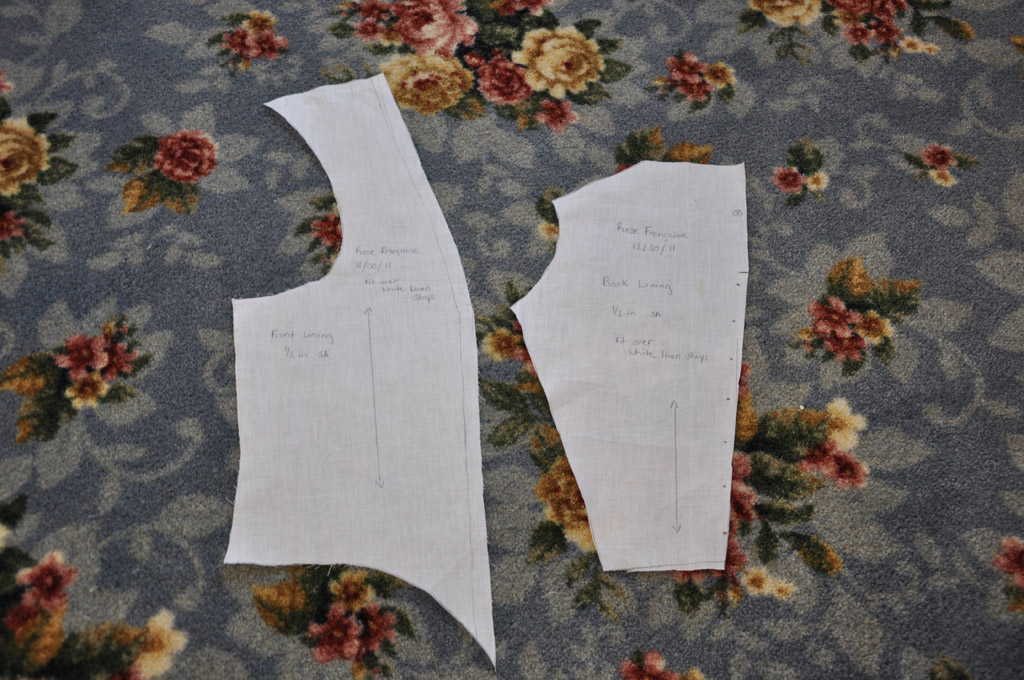I also used the pattern diagrams in The Cut of Women's Clothes and Patterns of Fashion.