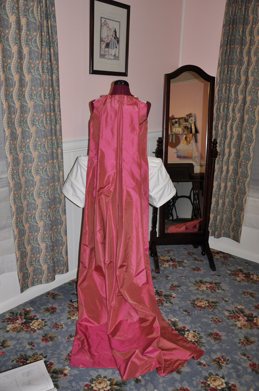 Since I only had a month to complete the dress, it is sewn with a combination of machine and hand work. The nature of the dress requires that much of it has to be sewn by hand but I’m using the machine for things like linings, long skirt seams, and petticoat side seams – basically anything that won’t show.
