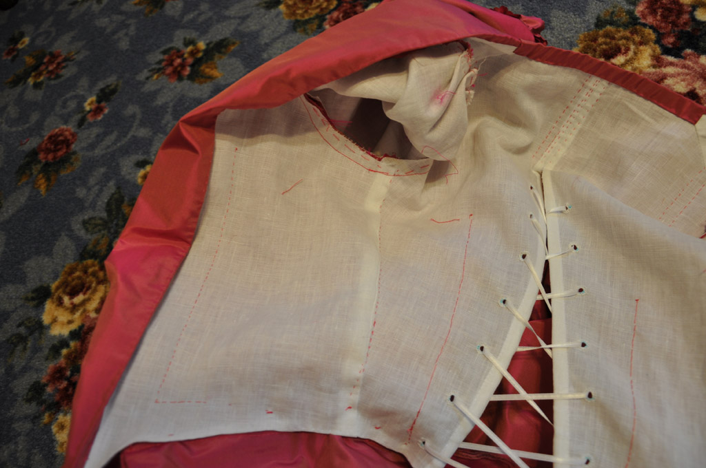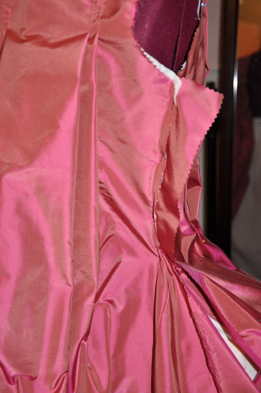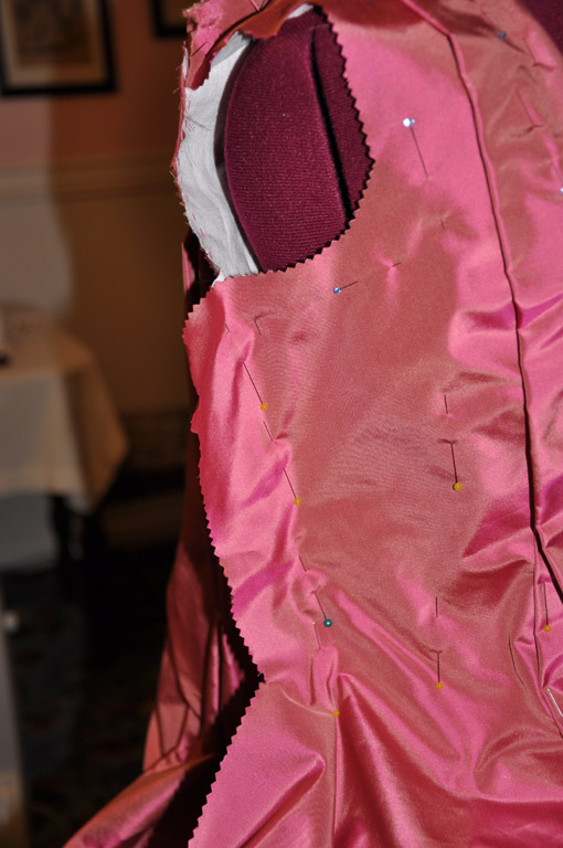 Continuing with the rose francaise construction notes, here is how I draped the front and attached the skirts.