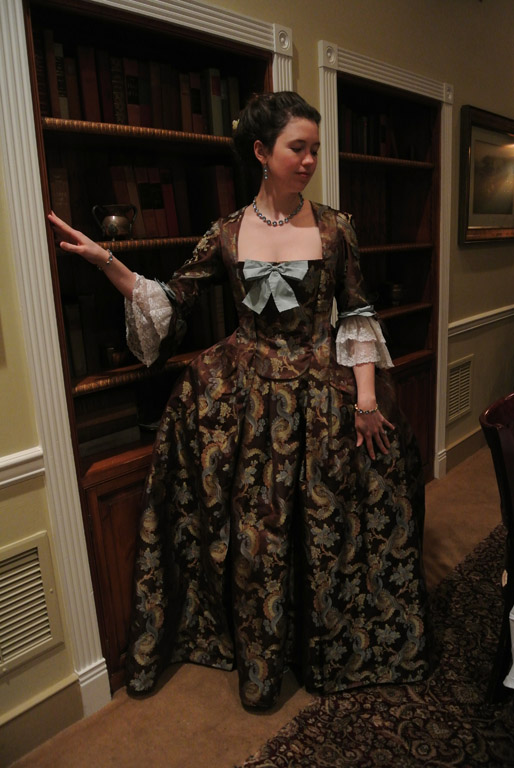 My new brocade francaise had it first outing, and on the whole I’m happy with how it turned out. It could use a few tweaks, but for now it’s good. I accessorized with a new blue paste parure from