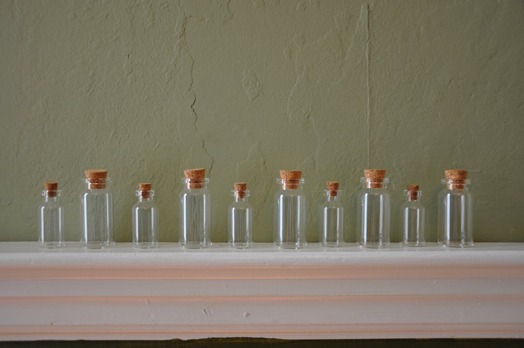 First, we have a set of specimen jars in two different sizes. I knew I wanted some jars to carry around with me, some with samples and some empty to use to collect samples while I was wearing the costume. I looked for antique ones on eBay but couldn’t find anything that wasn’t a) ridiculously expensive or b) just plain gross. Apparently, however, specimen jars with cork stoppers are a popular decorative or favor item and I found a set of 10 of each size for super cheap. I think they are perfect! I’m not sure what I’m going to fill them with yet, but I couldn’t pass them up.