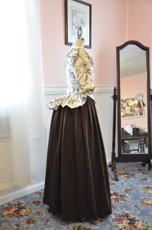 I dug through my stash and was lucky to find just enough chocolate brown wool to make a new practical petticoat. It's super simple but I think it looks great with my