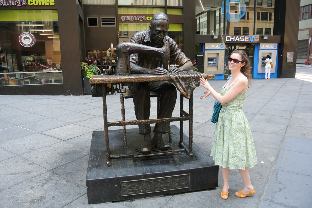WearWhenWhy who showed me around the fabric district and more! I of course had to get my picture with the garment worker statue. Leia took me to some of her favorite fabric shops and we had a blast just browsing and chatting about costumes. I wasn’t in the marked for much but I ended up with some silk crepe for a set of 20s undies and a silk print from Mood Fabrics for a blouse. Later I also stopped by M&J Trimmings and couldn’t resist getting a couple yards of silk ribbon.